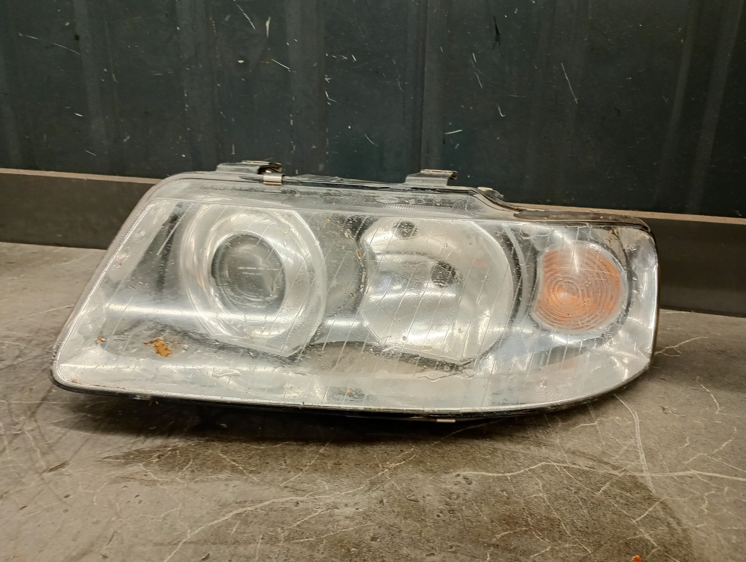 Oferujemy lewy reflektor marki Hella o numerze katalogowym 153895-00, dedykowany do modelu Audi A3 8L. Reflektor pochodzi z demontażu i posiada uszkodzone mocowanie regulacji wysokości, które można przełożyć ze starego reflektora. Wewnątrz reflektor wymaga czyszczenia.