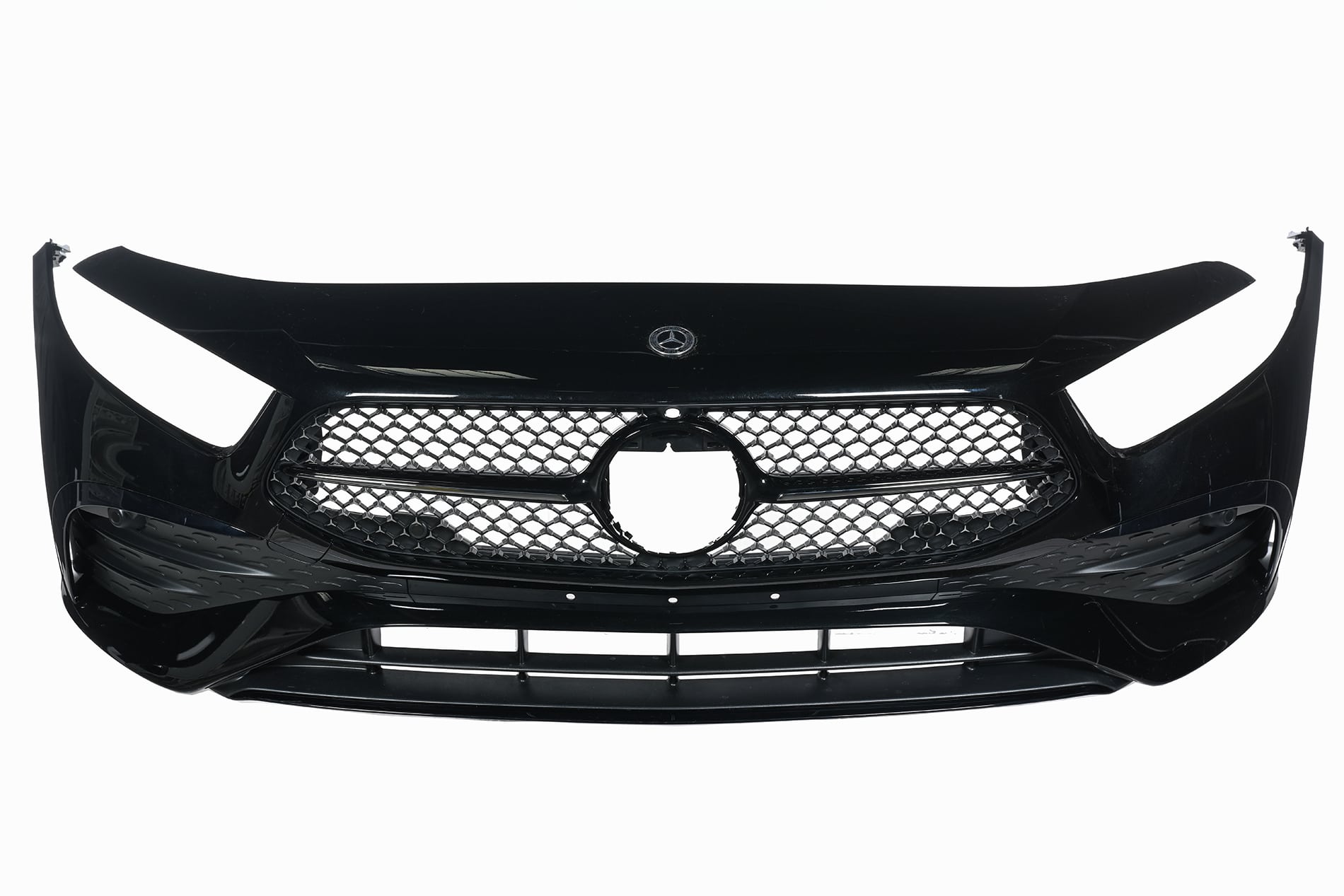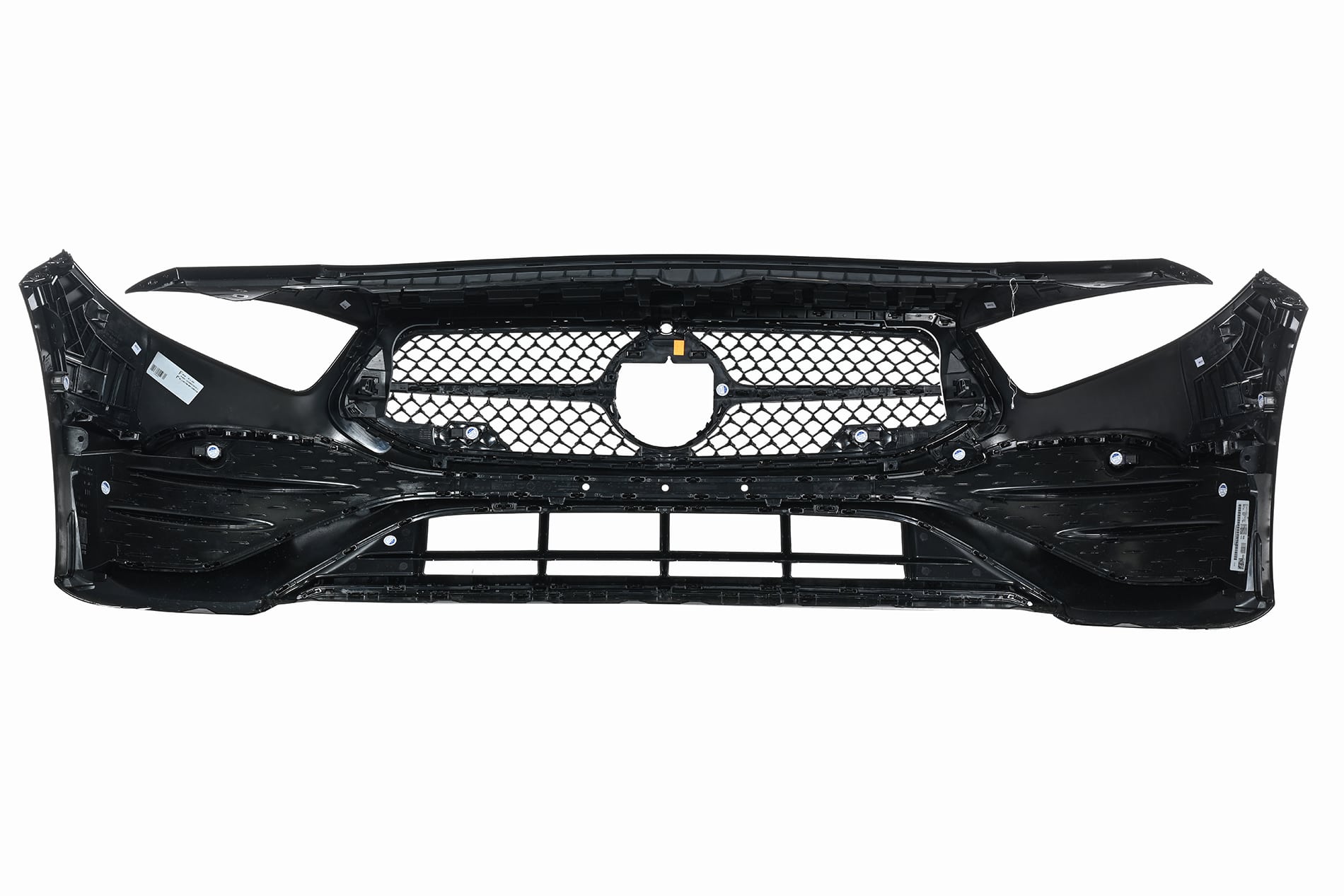 Oryginalna część Mercedes-Benz, . Zderzak posiada otwory pod tablicę rejestracyjną zgodne z normą ECE (inne warianty tablic zakrywa standardowa ramka).