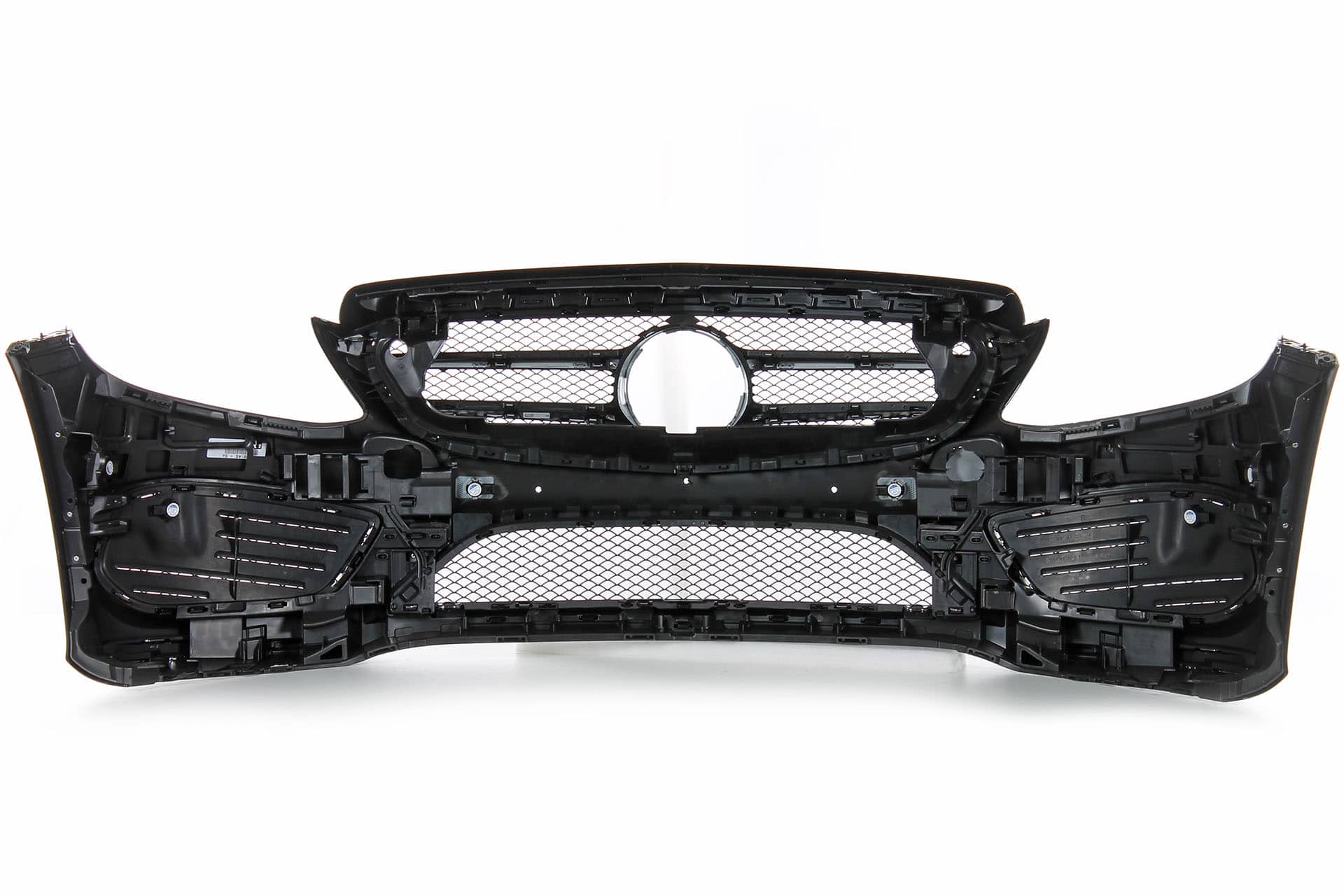 Oryginalna część Mercedes-Benz, . Zderzak posiada otwory na tablicę rejestracyjną zgodne z normą ECE. Mogą występować dodatkowe otwory pod inne warianty, które po montażu zakrywane są ramką tablicy ECE.