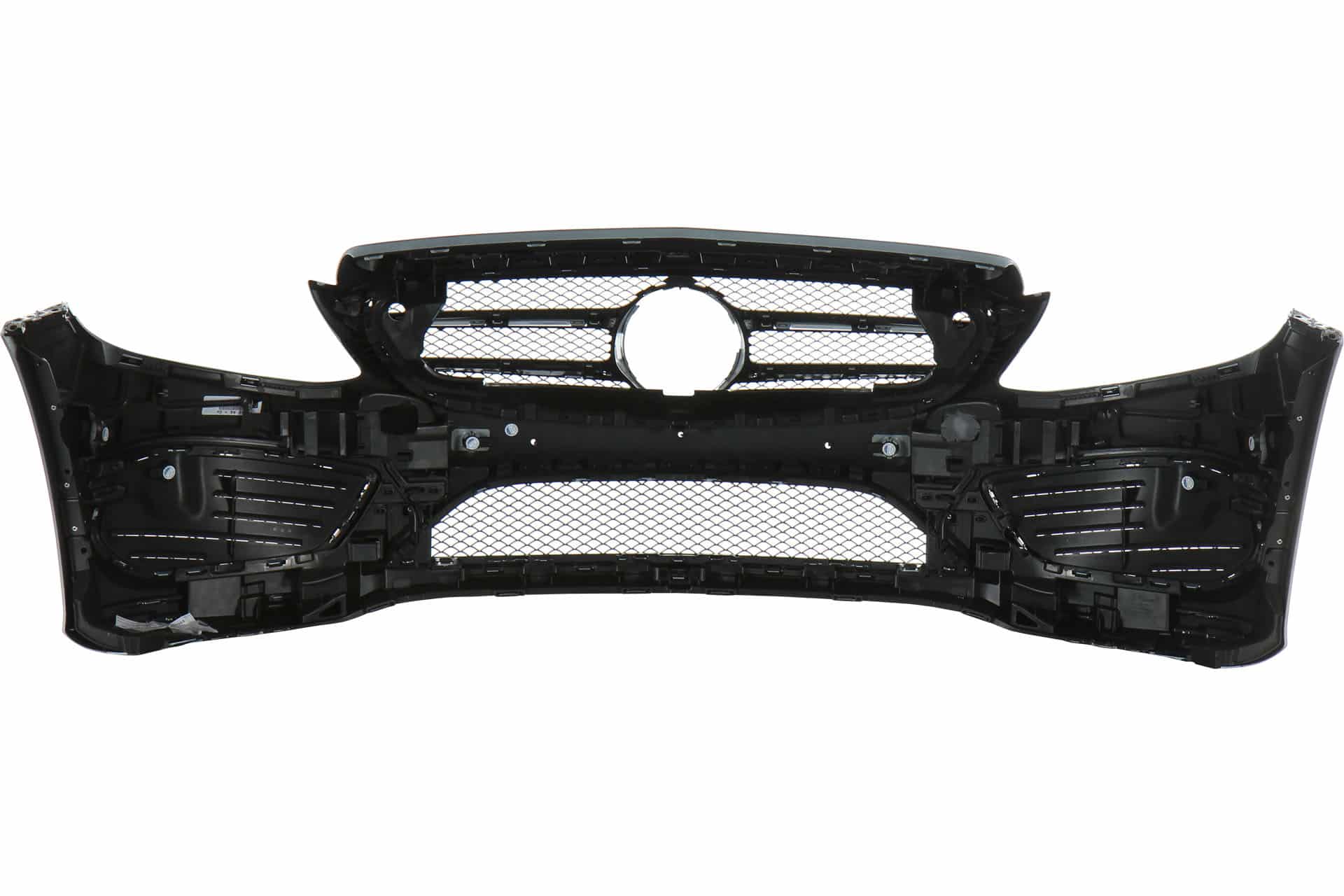 Oryginalna część Mercedes-Benz, . Zderzak z otworami na tablicę rejestracyjną zgodnymi z normą ECE. Mogą występować również dodatkowe otwory pod inne warianty – po montażu zakrywane ramką ECE.